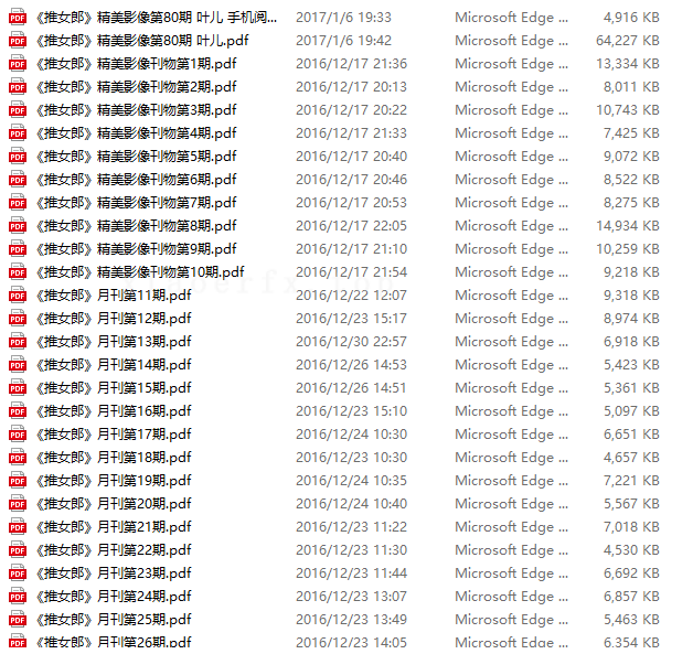 《推女郎》杂志是备受追捧的艺术性写真刊物,其敢于露点且极具审美价值,虽已停更但仍是不可多得的经典之作。本合集包含01-84期PDF版本资源,总页数达131页,文件数量为89个PDF,合计容量1.06G,清晰度极高,不输于市面上的套图。